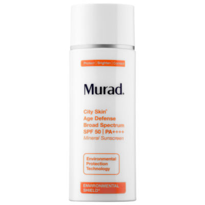 Murad s city skin age defense broad spectrum spf 50 pa helps to prevent sunburn and premature aging by shielding your delicate skin from the harsh effects of the sun from uv rays pollution blue light from screens and even infrared radiation.